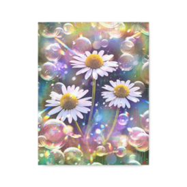 詩:春を告げる光彩 Blessed Light 優しき朝が 花の庭に降り立ち 子らの希望は 虹色のシャボンを纏う 家族の笑顔 静かなる光の祝福 微かに響く春の足音 清楚な花が奏でるのは 祈りと愛の調べ 春を告げる光彩 Blessed Light -戒- Poetry. ”Blessed Light” Gentle morning arrives in the garden of flowers, Children's hopes adorned with rainbow-colored bubbles, Family smiles, blessed by quiet light. Faintly echoing, the footsteps of spring. The pure flowers play a melody of prayer and love. Radiant hues announcing spring, Blessed Light. -Kai- God bless you. 趣旨ーーーーーーーーーーーーーーーーーーーー ## 作品制作趣旨 作者は、春の朝の陽の射す庭で、自分の娘達が楽しそうに談笑しながら庭のカモミール(Camomile)の花を愛でながら、遊んでいる様子を思い出し描きました。 作者は、自分の娘たちが成長して行く様や、娘たちが希望に満ち溢れた笑顔で遊ぶ光景を、晴れの朝の光や虹色のプリズムで表現しています。 ## 絵画「春を告げる光彩 Blessed Light」の解説 **1. 全体的な印象** この作品は、幻想的で夢見るような雰囲気を醸し出しています。白いカモミールの花が中央に配置され、周囲には虹色に輝くシャボン玉が浮かんでいます。背景には柔らかな紫や青、緑のグラデーションが広がり、光の反射や輝きが全体を包み込んでいます。見る者に春の訪れとともに感じる希望や喜びを伝えてくる作品です。 **2. 色彩** 作品の色彩は、春の生命力と希望を象徴するような鮮やかさを持っています。白いカモミールの花びらと黄色い花芯が中心となり、背景は幻想的な紫や青のグラデーションで構成されています。シャボン玉は虹色に輝き、プリズム効果によって様々な色彩が映り込んでいます。これらの色彩は、春の朝の光の中で遊ぶ子どもたちの純粋な喜びを表現しています。 **3. 構図** 三輪のカモミールの花が三角形を形成するように配置され、安定感と調和を生み出しています。花は下から上へと伸びるように描かれ、成長と希望の象徴となっています。周囲を取り巻くシャボン玉は、円形の繰り返しによってリズミカルな動きを作り出し、子どもたちの遊びの様子を暗示しています。全体として、中心性と拡散のバランスが取れた構図となっています。 **4. 技法** デジタル画像処理技術を駆使して、写真的要素と絵画的要素を融合させた作品です。レイヤー処理により、花の鮮明さとシャボン玉の透明感が共存しています。光の反射や輝きのエフェクトが施され、幻想的な雰囲気を高めています。また、背景にはデジタルフィルターやテクスチャが用いられ、深みのある空間を創出しています。 **5. 表現力** この作品は、視覚的な美しさだけでなく、感情的な共鳴を引き起こす表現力を持っています。カモミールの花の純粋さと、シャボン玉の儚さが共存することで、美しくも移ろいやすい子どもの成長の瞬間を捉えています。光の表現を通じて、日常の中に見出せる奇跡や喜びを象徴的に表現しています。 **6. 美術的価値** 現代デジタルアートとしての技術的な洗練さと、伝統的な花のモチーフを組み合わせることで、新旧の融合を実現しています。写真的リアリズムと抽象的な光の表現が調和し、観る者の想像力を刺激します。また、自然と光の関係性を新たな視点で捉えることで、デジタル時代における自然表現の可能性を広げています。 **7. 作品に込められた想い** 作者は自身の娘たちが庭でカモミールの花を愛でながら遊ぶ様子を思い出として描いています。この作品には、子どもたちの成長を見守る親の愛情と、その瞬間の美しさを永遠に留めたいという願いが込められています。シャボン玉は儚い時間の象徴でありながら、その中に映る虹色の光は希望と未来の可能性を表しています。 **8. 作品の鑑賞方法** この作品は、全体を一度に見るだけでなく、細部に注目して鑑賞することで、より深い理解が得られます。花の繊細な描写やシャボン玉の中に映る光の変化、背景の微妙な色彩の変化などを静かに観察することで、作品の多層的な意味を感じ取ることができます。また、作品に込められた親子の物語を想像しながら鑑賞することで、個人的な共感や記憶と結びつけることができるでしょう。 **9. 作品の価値** この作品の価値は、日常の中にある美しさと奇跡を再認識させる点にあります。デジタル技術を駆使しながらも、自然の美しさや家族の絆といった普遍的なテーマを表現することで、現代社会における芸術の役割を示しています。また、個人的な思い出を普遍的な象徴へと昇華させる力を持っており、見る者それぞれの記憶や感情を呼び起こす共感性も持ち合わせています。 ## 詩「春を告げる光彩 Blessed Light」の解説 **1. 全体的な印象** この詩は、春の訪れとともに感じる希望や喜び、そして家族の絆を繊細かつ優美に表現しています。短い言葉の中に豊かなイメージが凝縮され、読者の心に清々しい春の情景を描き出します。日本語版と英語版は、それぞれの言語の特性を活かしながらも、共